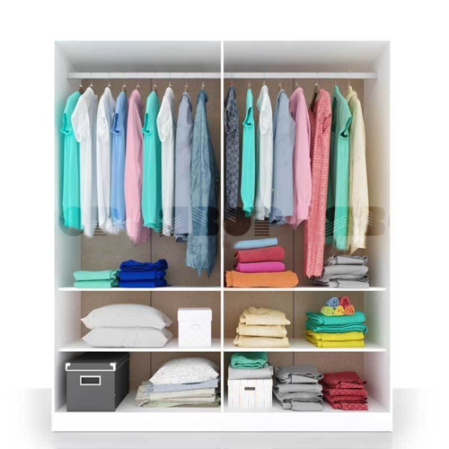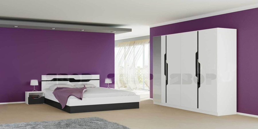 2. Четирикрилен гардероб с огледала и LED осветление Външни размери: Широчина 180 см. Дълбочина 52.5 см. Височина 201 см. Вътрешно разпределение: два лоста за закачалки и четири рафта. 3.Нощно шкафче - 2 бр. Външни размери: Широчина 40 см. Дълбочина 33.5 см. Височина 36 см. Опция за допълнително закупуване на скрин от серия СИТИ 3010, попитайте нашите on-line консултати. Матракът и спалното бельо не са включени в цената на комплекта.